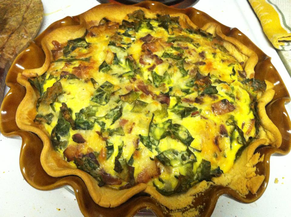 This opens up an entire new world of recipes for me and the Mr. This week we got a bunch of lovely green kale and since I’ve been doing more and more breakfast-y things for a grab-and-go kind of morning, I thought a kale & bacon quiche might be nice. The recipe called for spinach, but the kale is absolutely phenomenal in it and pretty hearty too. I can’t imagine spinach standing up this well and still remaining this brawny and green.