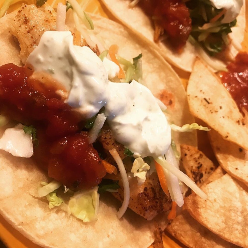 I don’t like food waste. It bugs me. Not only do I see it as a waste of our hard-earned money, we traded our time for that food, but I think about those who are food insecure. When I was in college, I worked in a supermarket with a prepared foods section next to the deli. At the end of the night, any food leftover in the prepared case was tossed. It wasn’t permitted to be donated to a homeless shelter and not even employees could take the discarded items out without paying full price for them. That struck me as socially irresponsible and fiscally irreverent. I haven’t been able to shake the memory since. A few months ago, I made this great enchilada casserole. I had purchased a ginormous package of corn tortillas because they were on sale and even after making two casseroles, I still had plenty leftover. I was relieved when I read I could freeze the remainder so they wouldn’t go bad before we could use them. I was able to not only use them tonight for the tacos, but I also cut some up and made baked tortilla chips for chips & salsa! This one is simple: use a pizza cutter or knife to slice tortillas in fourths or eighths (they don’t have to be perfect), place on a baking sheet and drizzle with oil or spray with cooking spray, season with salt and pepper and bake at 350° for 10min. Serve with warm salsa.