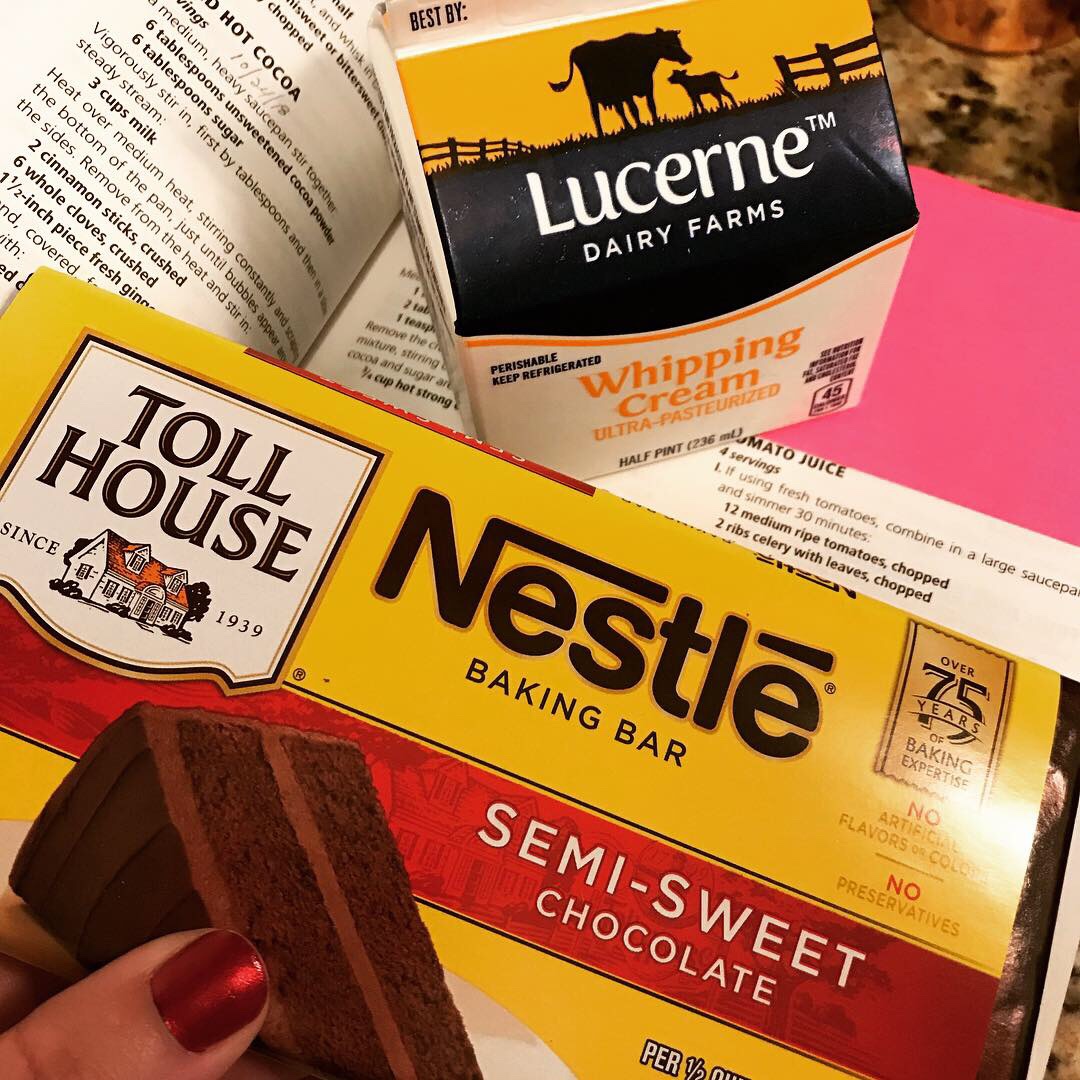 In absence of my favorite baking chocolate, I used Nestlé Toll House Semisweet Baking Bars. Nestlé Toll House is a great classic brand and my ganache turned out smooth and decadent. No complaints here. I would also recommend Belgian brand Côte d’Or which can generally be found at World Market (except for the day I went looking. I found out later, a man had come earlier that day and cleared the shelf!) World Market is currently running a 15% off your entire purchase promotion right now for Rewards Members so you can stock up!
