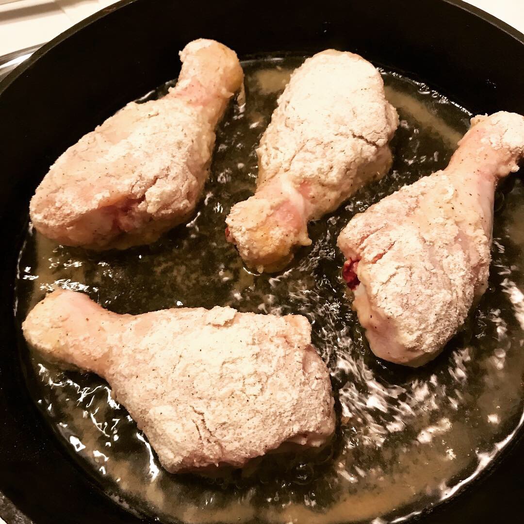 After dredging half the chicken and carefully sliding it into the pan, I decided to bake the remaining half to cut down on time and pan space. This can be easily done in a 350° for 45-50min depending on the size of your chicken pieces. Usually when things are fried at home, the whole house smells like fried food for days. Instead, my house smells warm and cozy, like your Southern grandma’s kitchen. A combination of warm chicken and simple spices greets you when you walk through the door.