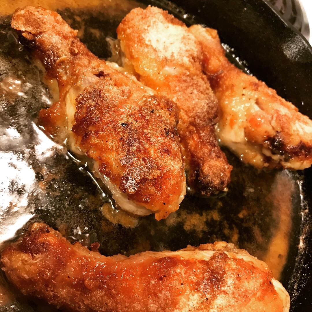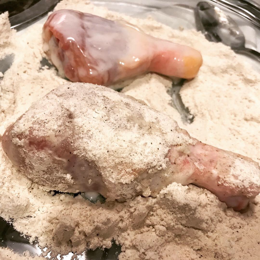 After dredging half the chicken and carefully sliding it into the pan, I decided to bake the remaining half to cut down on time and pan space. This can be easily done in a 350° for 45-50min depending on the size of your chicken pieces. Usually when things are fried at home, the whole house smells like fried food for days. Instead, my house smells warm and cozy, like your Southern grandma’s kitchen. A combination of warm chicken and simple spices greets you when you walk through the door.