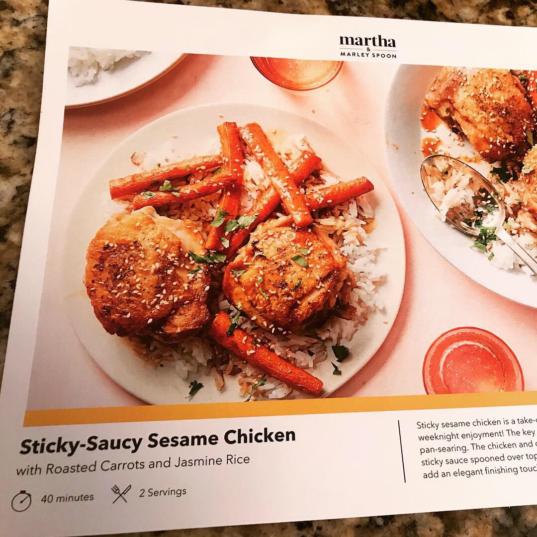 Last night, in honor of Chinese New Year, I tried their Sticky-Saucy Sesame Chicken (with Roasted Carrots and Jasmine Rice) from my recent Martha Stewart & Marley Spoon meal delivery kit. This recipe utilized many things I typically have in my pantry as it is, so I knew we would like it right off the bat.