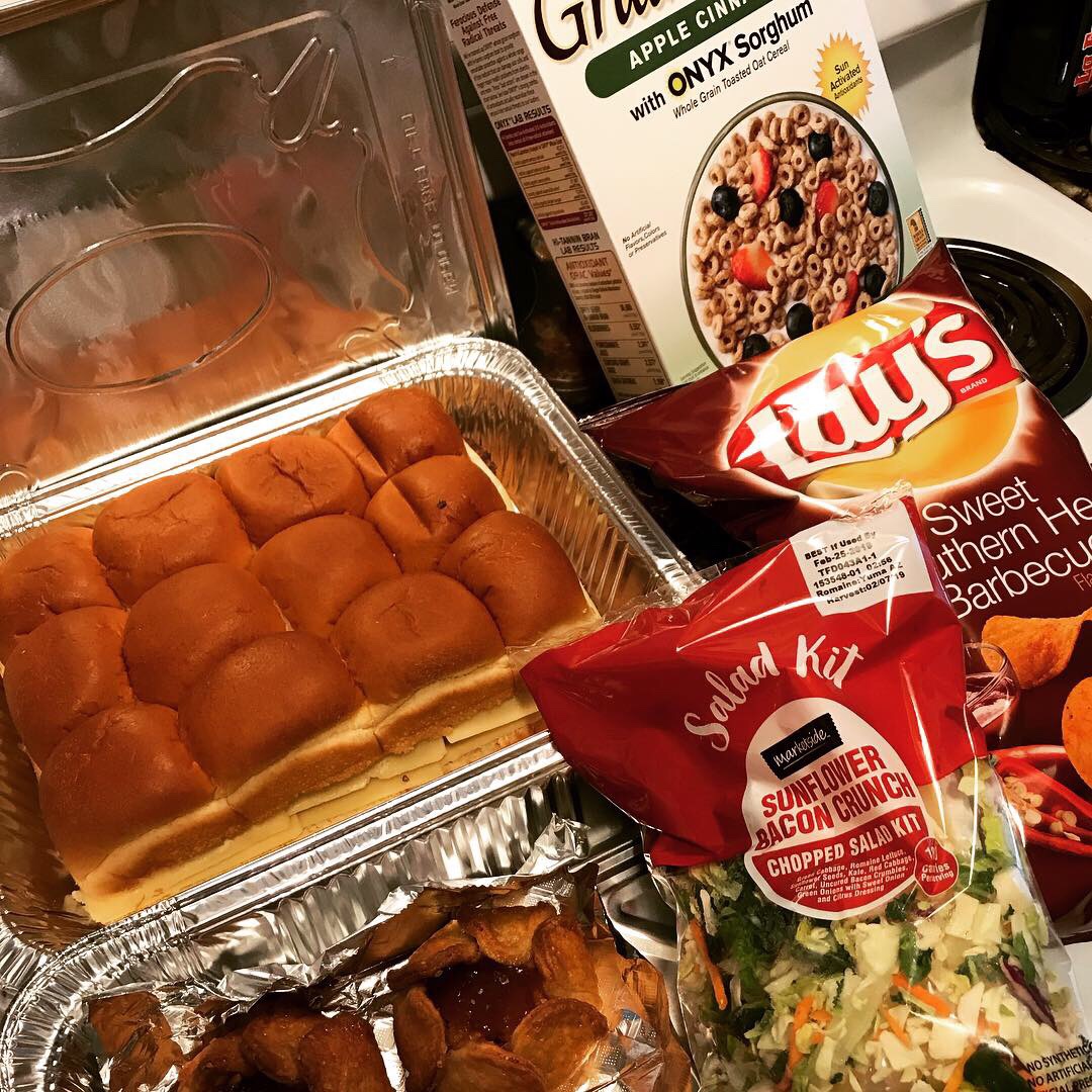 To finish, I threw in some salted caramel apple tarts and some Grain Berry brand cereal-Os. I wish I could say the tarts were homemade, but sadly they weren’t. They came as a frozen add-on with a recent meat order and I honestly just felt that they just fit with the meal! What’s more American than apple pie? The cereal-O’s were included because they were a healthier variety and they have the three boys in the house!