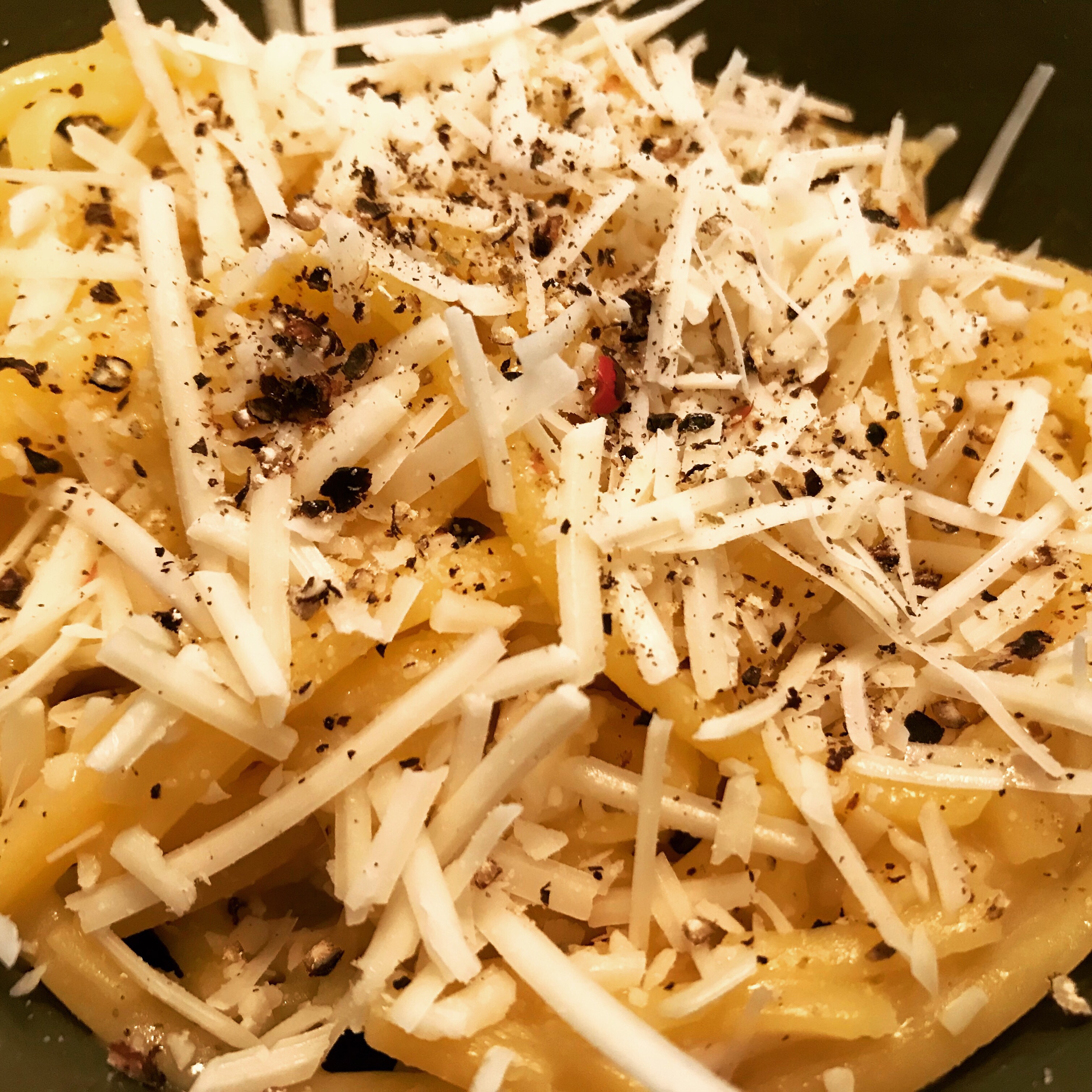 This past week I came across a simple recipe for classic cacio e pepe from Food Network Magazine. Cacio e pepe is a basic pasta recipe originating from Rome. It’s only four ingredients, but oh so delightful. Pasta, olive oil, cracked black pepper, and Pecorino Romano. That’s it. It’s like a simplified mac & cheese, but the romance happens in the method. Some of the pasta water is even incorporated into the sauce to help melt and bind the peppery cheese to the noodles for a punch of flavor in every bite.
