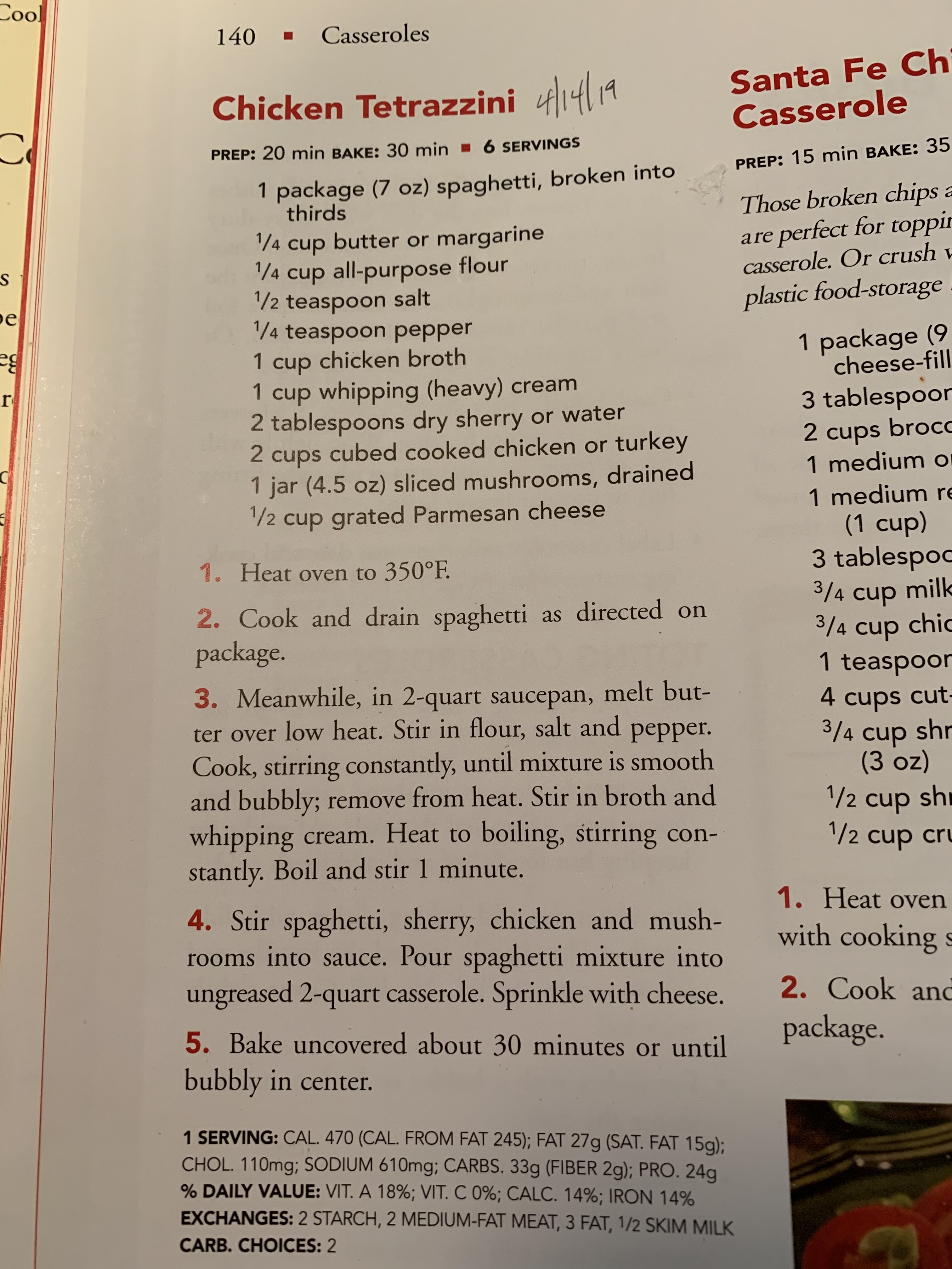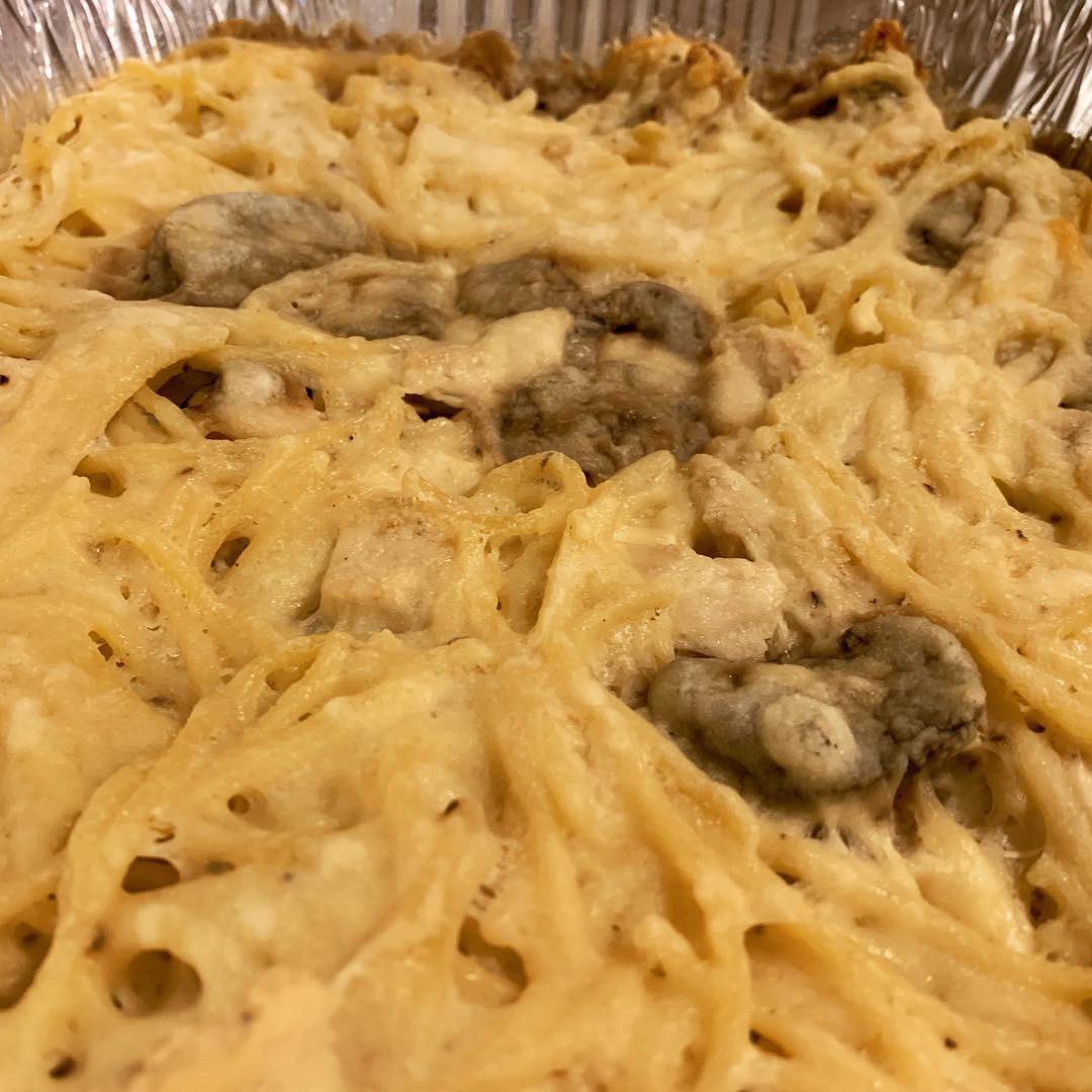 The Chicken Tetrazzini casserole from my Betty Crocker cookbook was easy enough. Since its inception in the early 1900s, Chicken Tet has been filling bellies and comforting souls across America’s collective dinner table. I loved how the sauce was built upon a roux base instead of a can of cream-of-something. Cream-of-something soups have their place in America’s pantry as a great standby, but I was excited to develop my own flavors this time. This roux-based sauce was rich and creamy without overpowering any of the other flavors imparted from the other ingredients. The recipe called for a jar of mushrooms, but I opted for fresh mushrooms since I like the texture and flavor better. Blanketing the whole dish with fresh, grated Parmesan prior to baking adds that extra layer of salinity needed to cut through the fat. Opting instead for shredded Gouda would also complement the dish well.