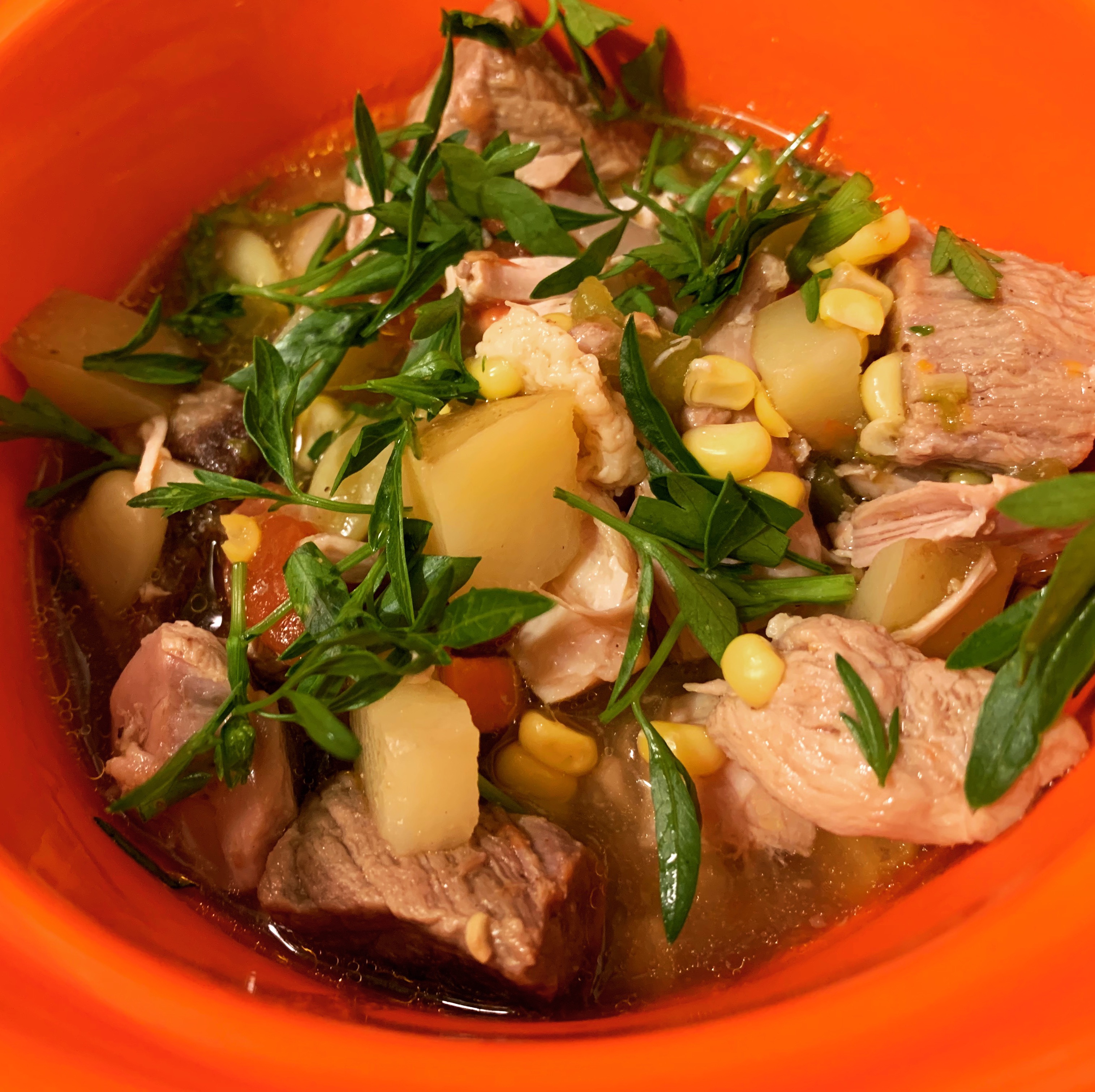 For this year, we’re settling for a night in on the couch watching it on TV with some Kentucky Burgoo (accent on the first syllable) and piping hot cornbread! Like the Irish Mulligan Stew, Kentucky Burgoo is a catch-all meat-and-veg stew cooked and served as a communal event during harvesting or butchering – all times of the year. Sometimes even, it contained squirrel (mine did not).