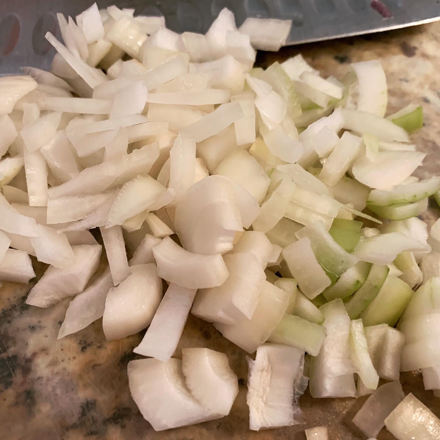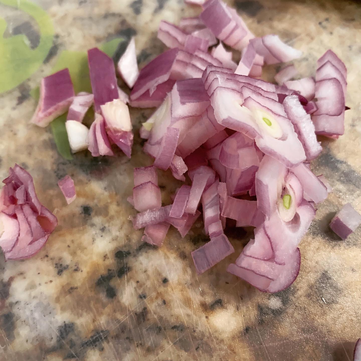 Last night, I chopped and sautéed half a shallot, three cloves of garlic, a quarter of a sweet onion, and a quarter of a jalapeño in about 3tbsp of butter until it was all fragrant and translucent. I seasoned the vegetables with kosher salt, fresh cracked black pepper, and half a tbsp of Mexican oregano.