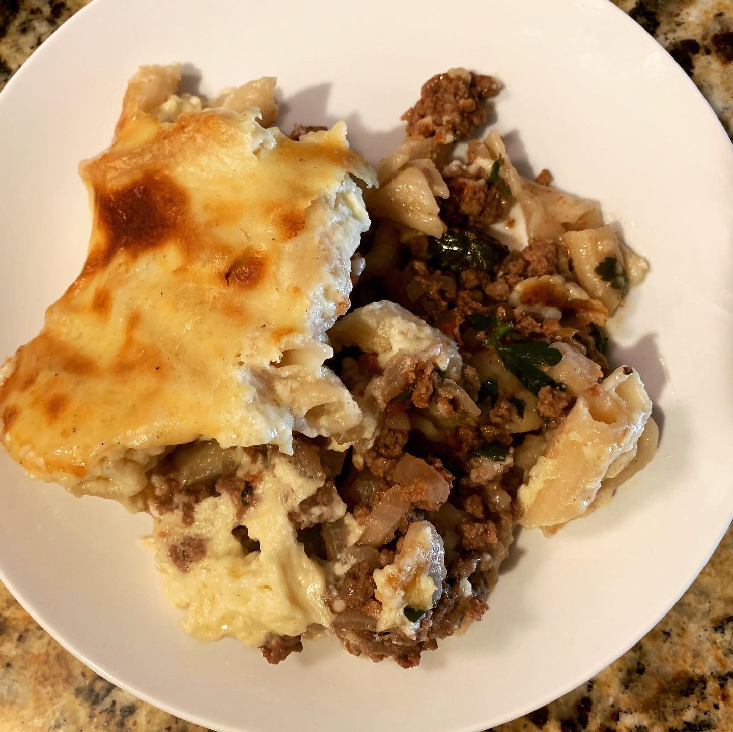 With banks along the Mediterranean Sea, it isn’t a stretch to consider that the local cuisine resembles other Mediterranean food in some form or fashion. I’ve never specifically had Egyptian cuisine, but we do enjoy many foods attributed to the Mediterranean. While perusing local dishes online, I came across a few that I knew I loved and some that were completely foreign to us. I settled on an alluring layered recipe called Macarona Béchamel from “Tara’s Multicultural Table” (I know, I know! I see the similitude too!) with pasta, meat, and silky béchamel.