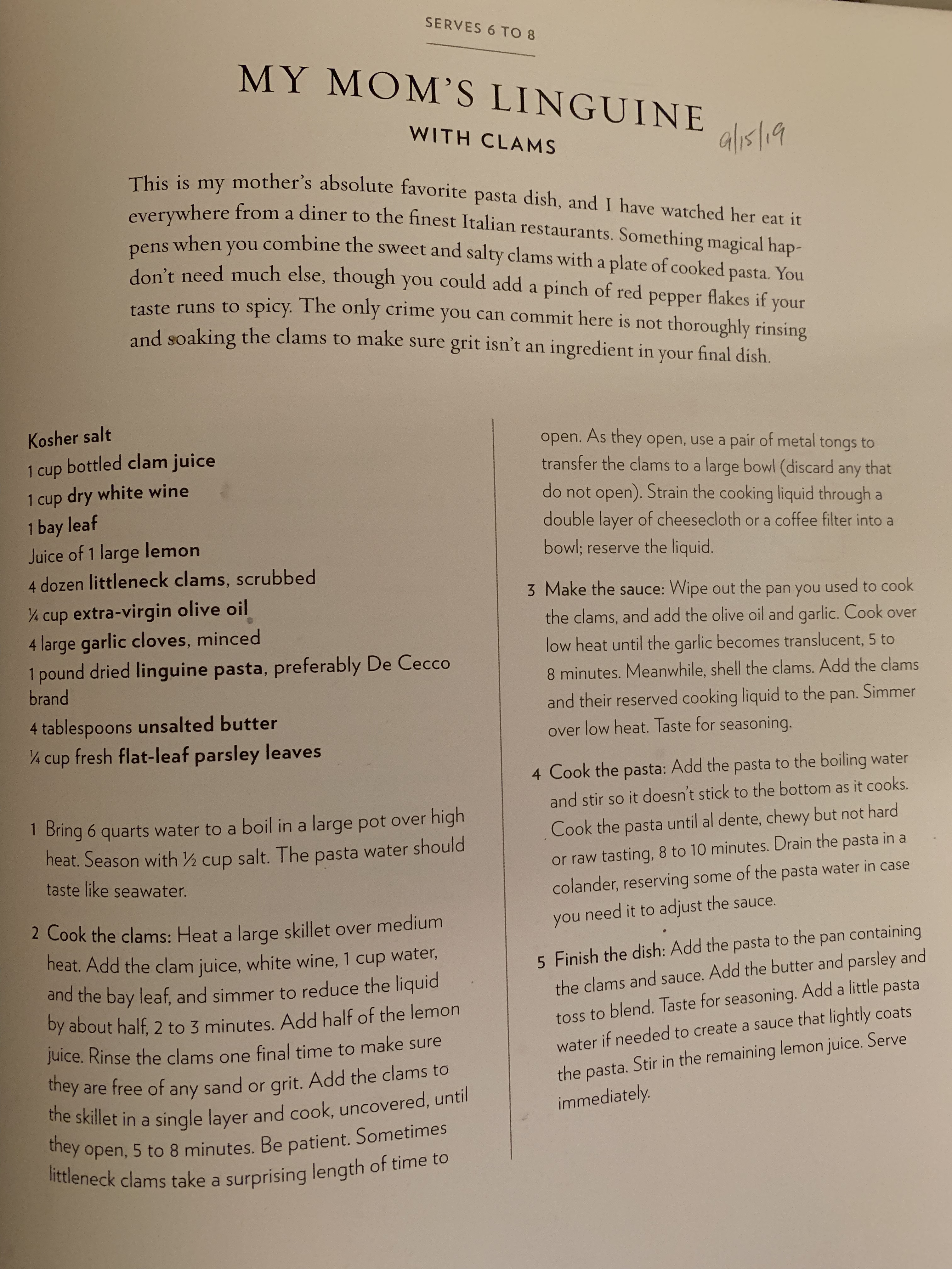 We were so taken with the marinara dish we made last month from Alex Guarnaschelli’s The Home Cook that we took aim at another one of her pastas. This time it was her mom’s Linguine with Clams and while it did not disappoint, it was not quite as amazing as the marinara. I’m definitely making that marinara again…