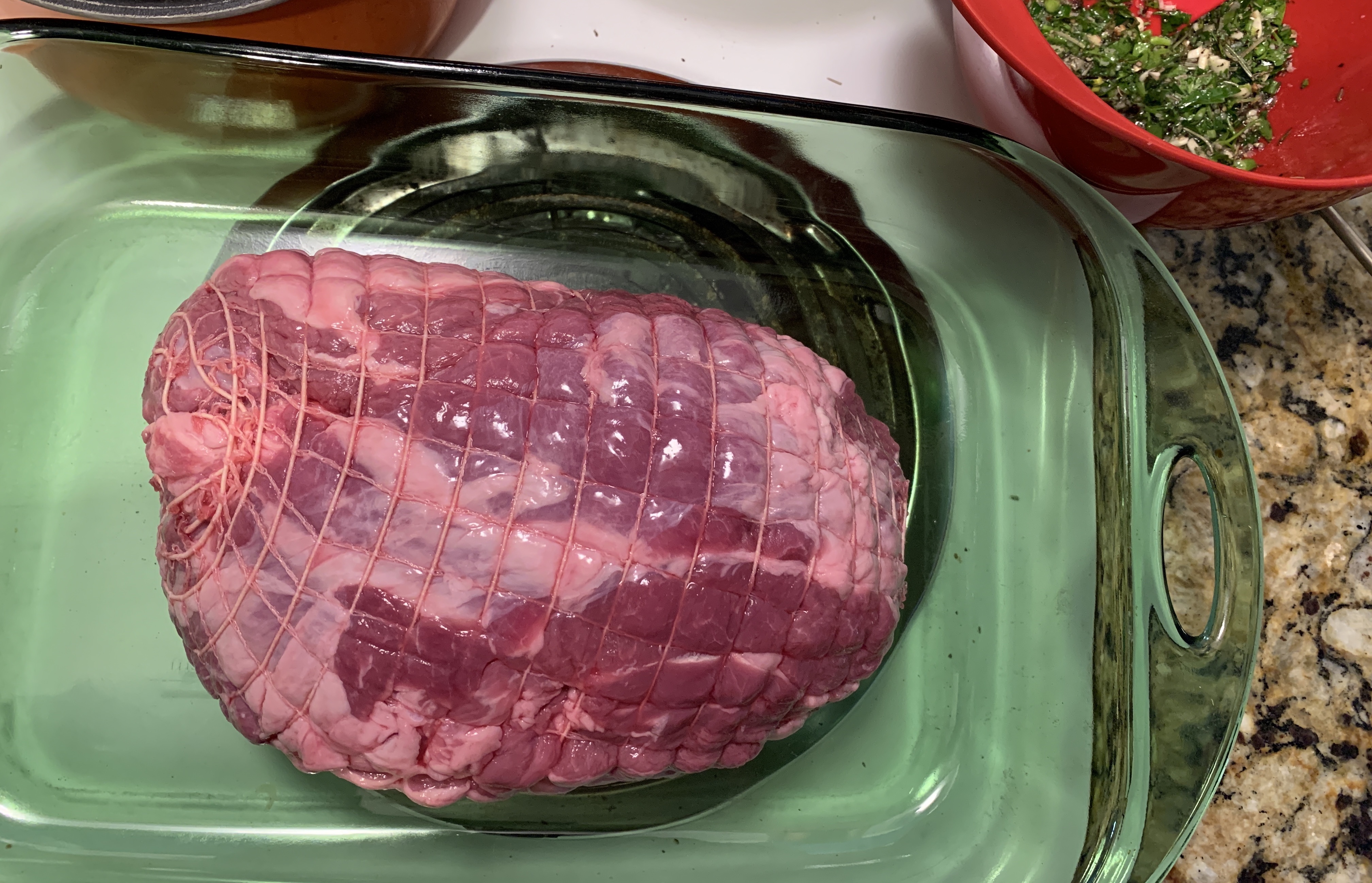 The last time I cooked a leg of lamb, I was cooking for family Easter 2017 from a Joy of Cooking recipe and it. was. a. beast. It too was boneless, but it was butterflied and stuffed and more than twice the size of the one I did today requiring two people to flip it midway through roasting! This time, since we’re all isolating (boo!) so there’s not much dinner party action going on. Therefore, a 3-1/2lb roast is more than enough for us.