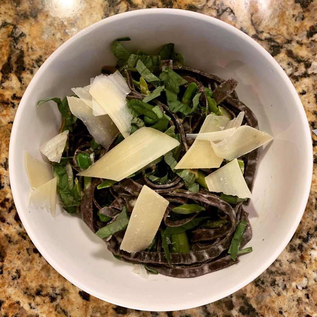The one thing I did to send this dish slightly off-kilter was that I swapped out the familiar fettuccine with Explore Cuisine Black Bean & Sesame Fettuccine. I kept seeing exquisite images of things swirled in black, yes BLACK, pasta in the publications I like to read and look at on Instagram. Publications like Bon Appetít, Saveur, Food Network, and America’s Test Kitchen inspire me to search out new and unique products, ingredients, and recommendations. I don’t lean on them exclusively, but they are a valuable source of inspiration and reflection. Sometimes these inspirations hang out in the back of my mind for a few days before I act on them, sometimes it’s a couple years, but usually inspiration becomes a reality at some point.