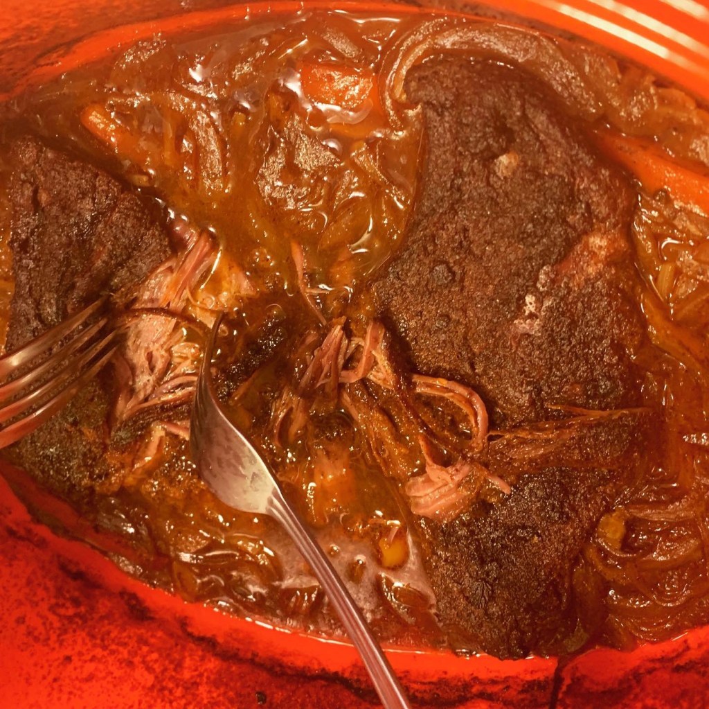 Truthfully, it seems like a long cooking time, but this was one of the simplest preparations ever. I was really sold at how such an easy process could produce such a delicious dish! The long, slow braising in the oven (you can also pop this into your slow-cooker), really obliterated any bit of toughness from the meat making it so easy to shred. It practically fell apart on its own! This technique might just be my new weapon of choice in my arsenal…