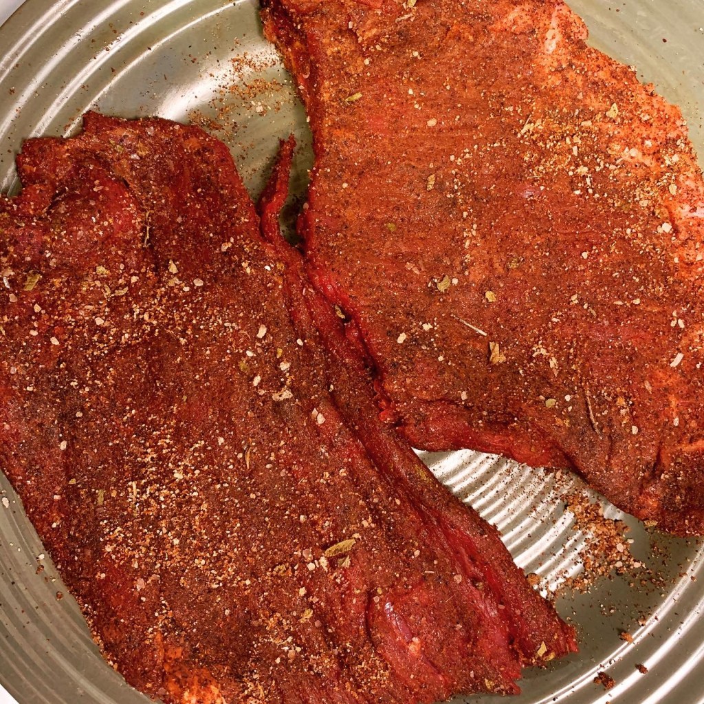 The recipe calls for flank or skirt steak. Flank and skirt steak are very similar in many ways, but differ in regards to where they’re obtained on the cow. They’re very close, but flank steak comes from the area between the hips and ribs whereas skirt steak comes from the part between the chest and abdomen. They can both be used in this recipe interchangeably. The cost is different, but the results will be just as good! Both of which will still need to be tenderized with a meat mallet to break up the tough connective tissues.