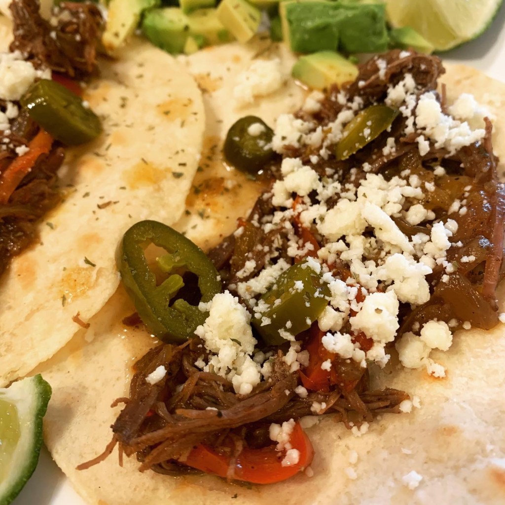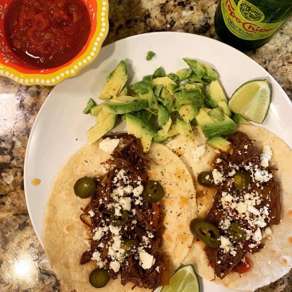 Hannon recommends that you layer the tender, juicy shreds of meat with plenty of avocado and sour cream with cheese on a flour tortilla. We’re still trying to make healthier choices bit by bit, so we swapped flour tortillas with Siete Almond Flour Tortillas for me and Mission Corn Tortillas for The Mr. I’d had my fill of Monterrey Jack cheese lately so I opted to switch things up for a change with Cotija cheese. Cotija is a Mexican cow’s milk cheese that originated in the town Cotija in the Hills of Michoacan. It’s grainy and salty and a delicious alternative to your average shredded taco cheeses. Each taco got a generous squeezes of lime as well and we still actually managed to have leftovers after we nearly popped!
