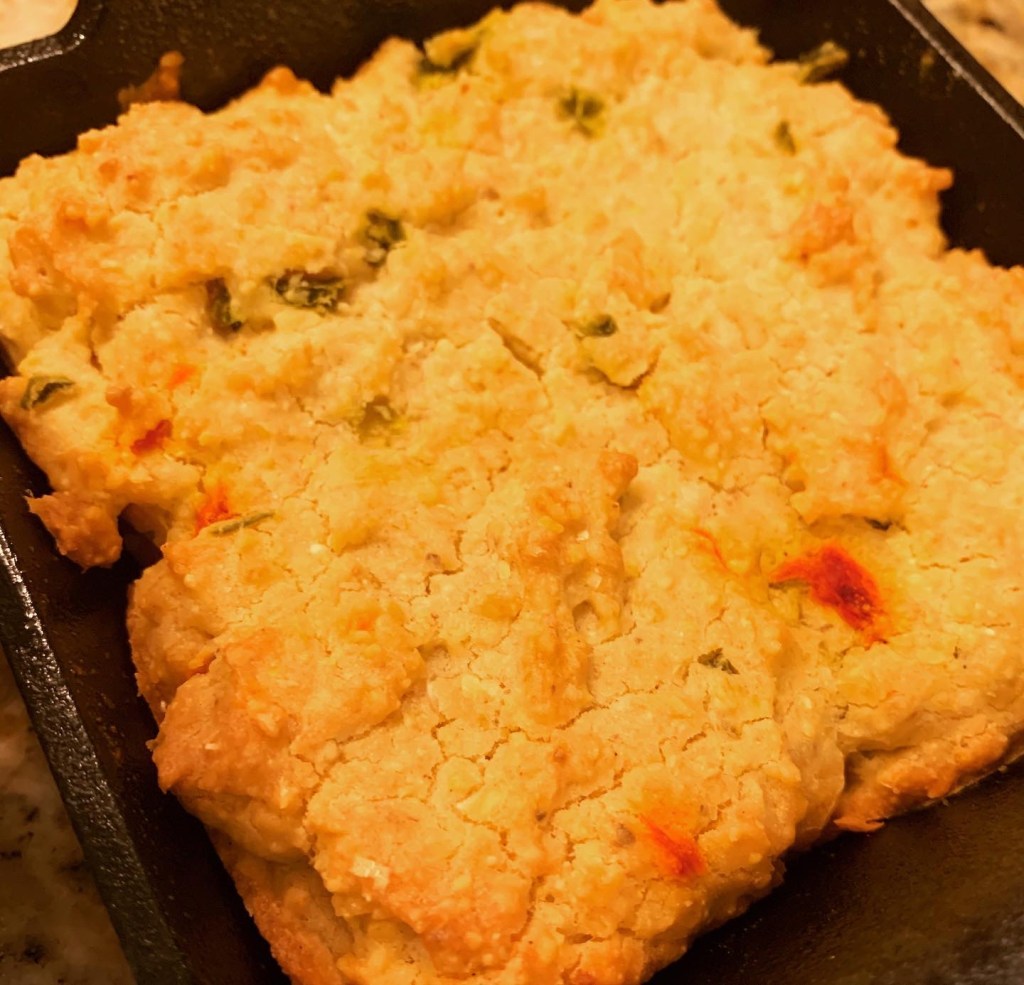 What the chili provides in simplicity, the cornbread makes up in moderate complexity. The chili is a quick 5 ingredients, so I would recommend starting with the cornbread first if that’s the route your choose. I’m definitely not upset about the mildly more complicated nature of her cornbread though. Jalapeño cornbread is a delicious alternative to your usual chili and cornbread! It’s definitely not spicy like you would think, but you can make it spicy if you prefer. I definitely opted for chopped pickled jalapeños and pimientos stirred in mine. It created a very “eye-ppealing” side for the simple, yet enticing chili. On my second attempt, I swapped the heavy cream, the peppers, and the pimientos for shredded pepper jack cheese and I can truthfully say it wasn’t as satisfying nor as flavorful.