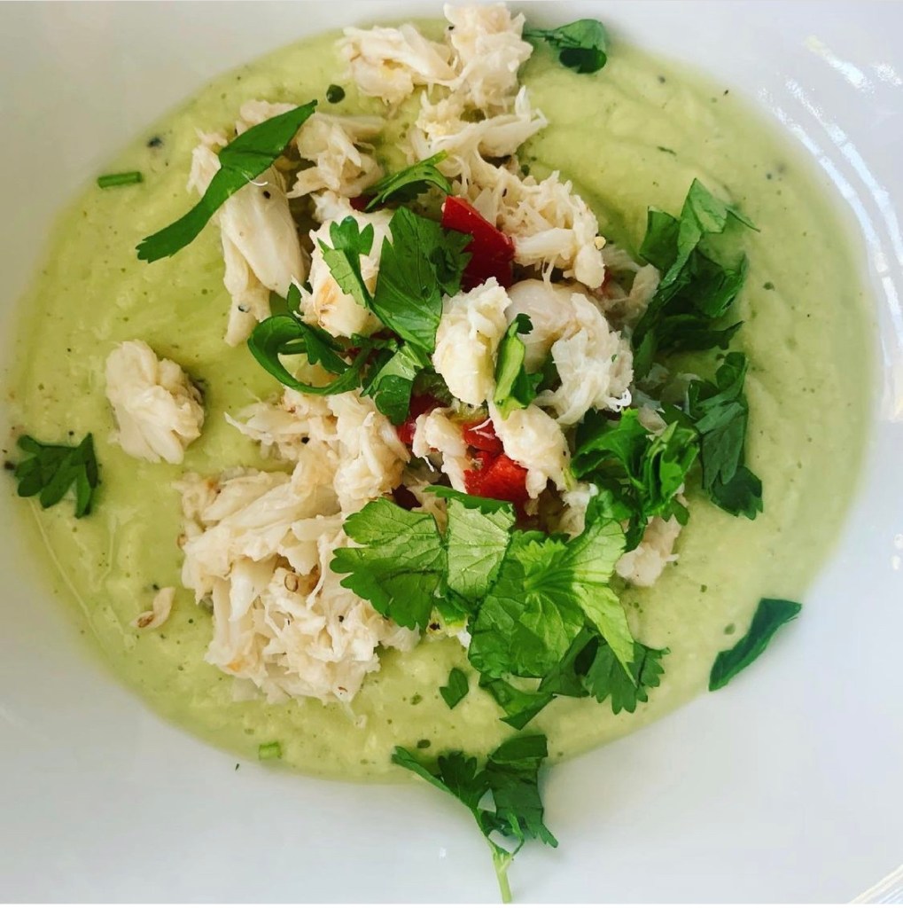 All of this to say, trading my more active job for a desk job means I need to be more mindful. This soup seems like it would be heavy owing to the avocados and buttermilk, but in fact it was much lighter textured than I imagined. The cucumber purée gave this soup a fresh and cooling lift while the Serrano-spiked crab mixture nestled in the center added kick and gravity to this decidedly lady-like soup. I call it “ladylike” because this is the type of soup which is more ideally suited to a ladies luncheon. It’s a little zesty, but definitely more dainty and prim than a hearty family dinner at home. In any case, I enjoyed it because, honestly who doesn’t love lump crab meat?!