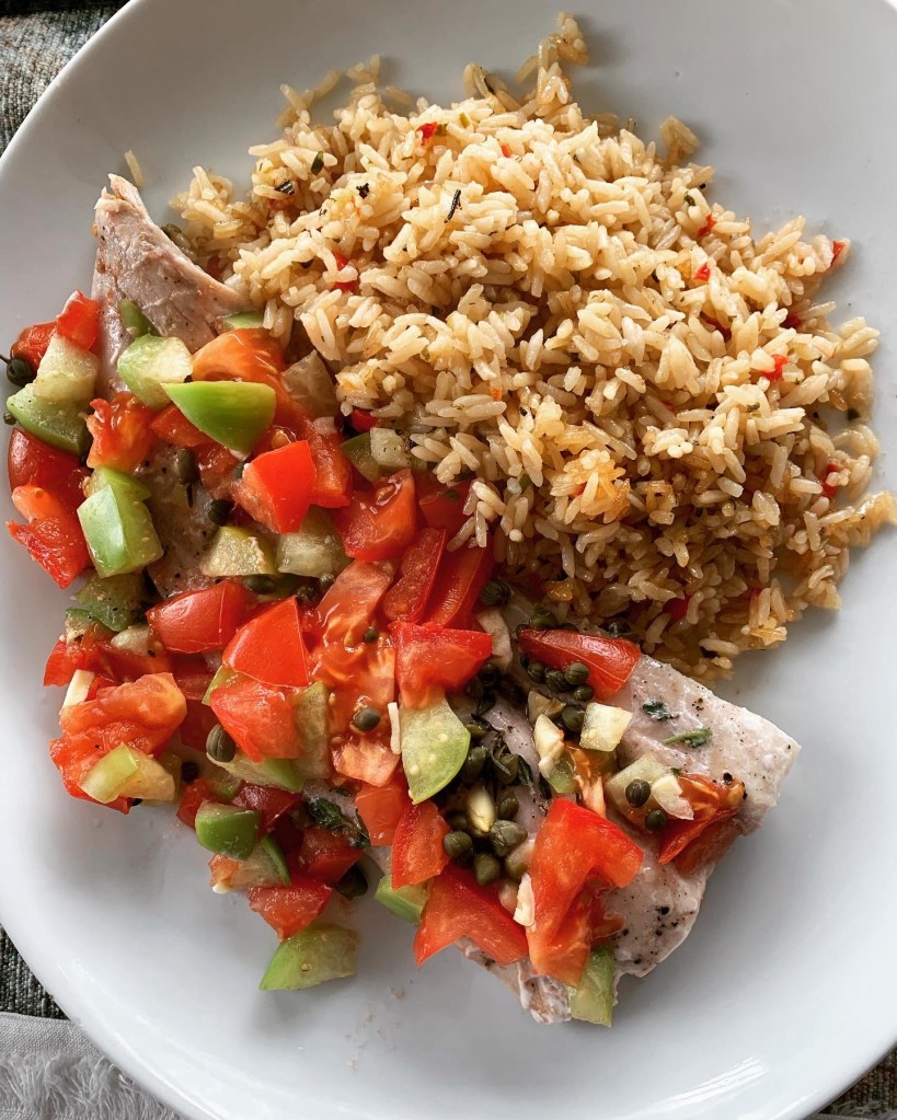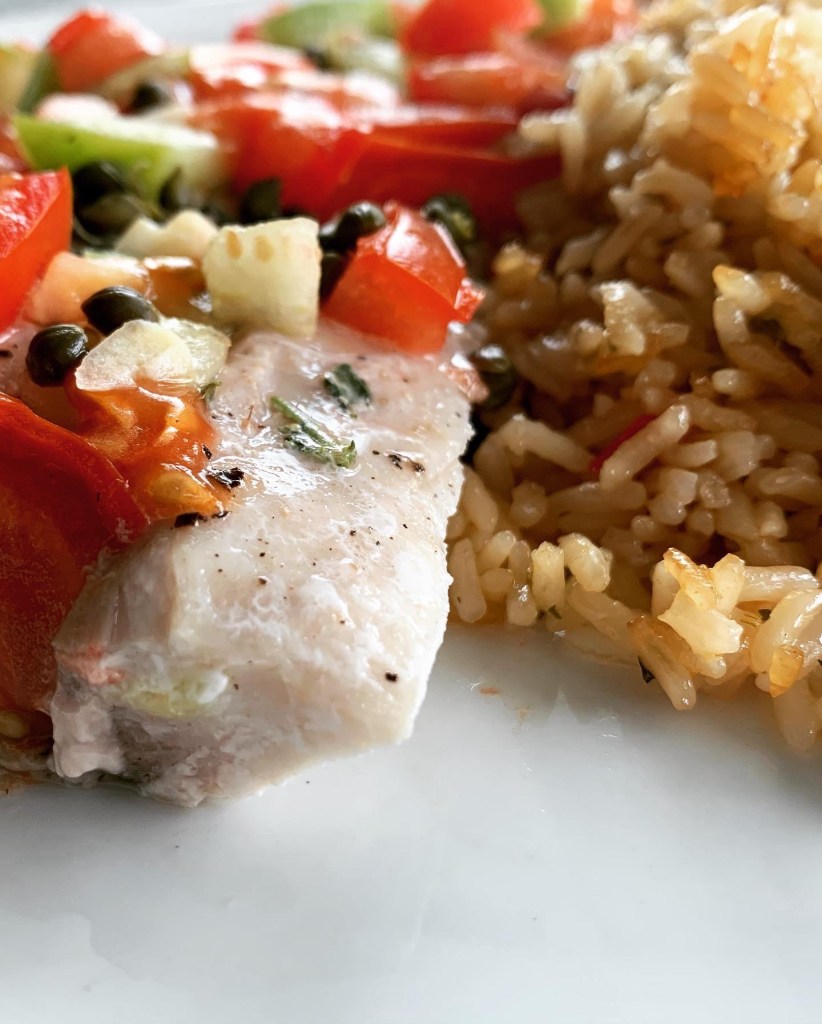 Since I couldn’t find a clicky link to share the recipe, I’ll transcribe my take on this delicious meal below. A note: My recipe called for mahi mahi (which I used just out of convenience sake), but if you have access to red snapper, I highly recommend using this instead to a lend a more authentic feel to the meal.