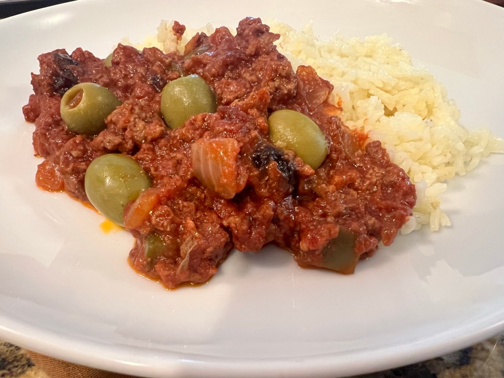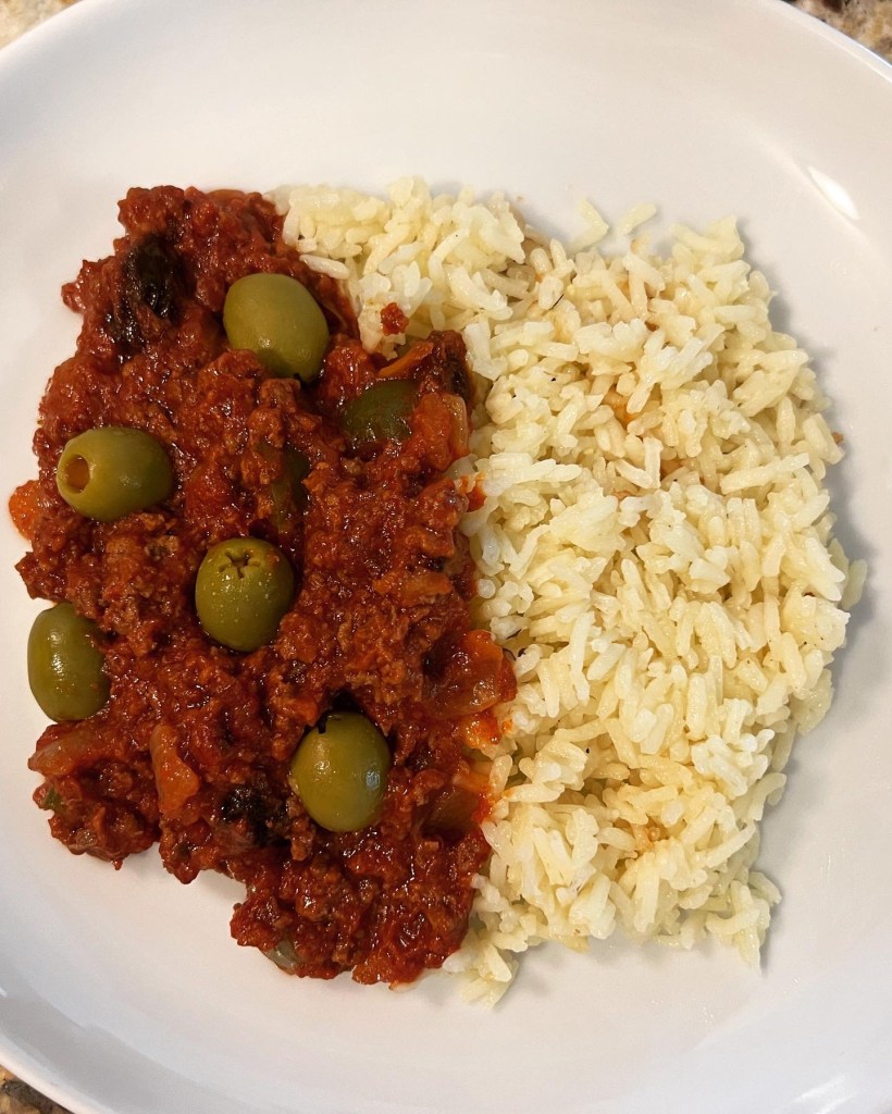 I used more ground beef and less tomato paste and sauce than Cleeton’s recipe called for, but I figured this was probably acceptable since this is how recipes become your own. Come to find out, tomato paste and sauce were common ingredients for Picadillo. This surprised me as Caribbean food always struck me as leaning more toward the fresher, less processed side of things. I would have figured big, garden-fresh tomatoes would have been hand-crushed to form the sauce. This is the path I personally would have taken since I don’t often buy tomato paste or sauce. No judgment here if you do, but I think I would like to try this route one day. Just waiting for my Roma tomato plant to start producing any day now…